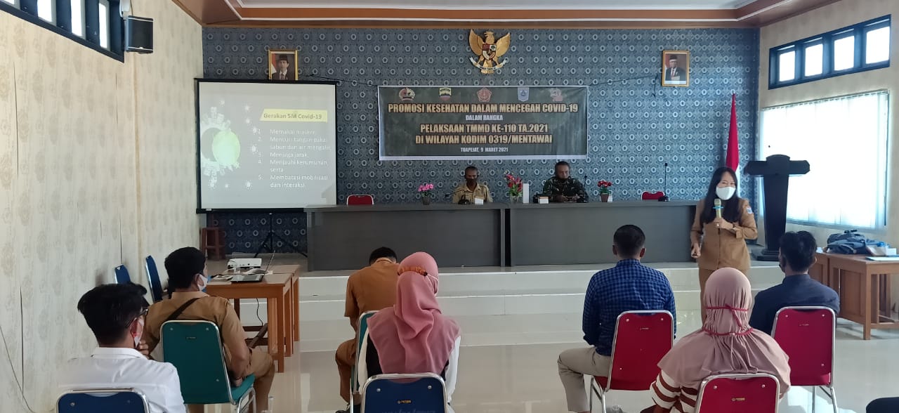 MENTAWAI – Serangkaian Pelaksanaan Tentara Nasional Indonesia Manunggal Membangun Desa (TMMD) Ke 110, di Desa sipora jaya, Kecamatan sipora jaya, dilaksanakan penyuluhan penegakkan disiplin prokes covid 19