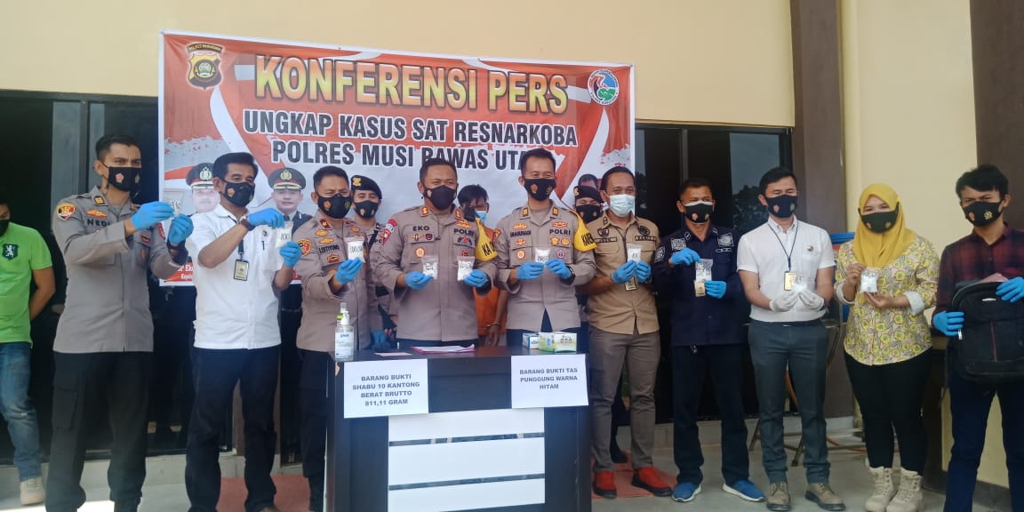 Kliksumatera.com, MURATARA- Sat Narkoba Polres Musi Rawas Utara (Muratara) berhasil menggagalkan transaksi narkoba jenis Sabu 811,11 gram dalam kemasan 10 kantong dalam tas punggung.