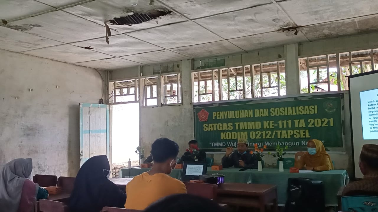 Satgas TMMD ke 111 Kodim 0212/TS berlokasi di lokasi Penyuluhan pendidikan Dasar di Desa Siuhom, Kec. Angkola Barat, Kab. Tapanuli Selatan Kadis Pendidikan Tapsel H. Darwan Situmorang, S.Pd,M.Pd, Sabtu (26/6/2021) mengatakan Satgas jadi teladan dalam jalankan prokes di penyuluhan pendidikan di TMMD Kodim Tapsel. (*)