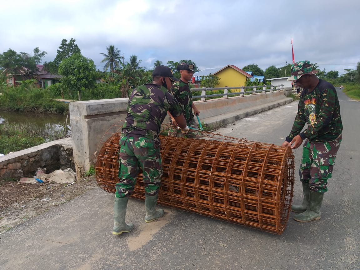 Kapuas,- Pengecoran jalan usaha tani Desa Saka Lagun, Kecamatan Pulau Petak, Kabupaten Kapuas, oleh Satgas TNI manunggal membangun desa (TMMD) terus dilanjutkan, Selasa (30/3/2021). Untuk mempercepat pembangunan jalan, Satgas terus mendistribusikan material termasuk anyaman besi yang untuk ketahanan pengecoran jalan.