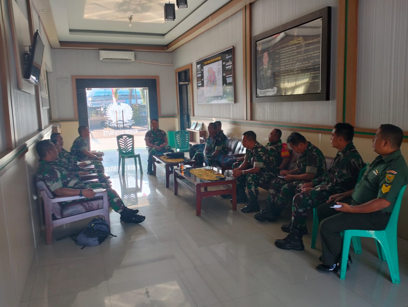 BUNGO – Pabung Kodim 0416/Bute Kapten Inf Agussari memimpin rapat kesiapan penutupan TMMD Ke-117 Tahun 2023 Kodim 0416/bute bertempat di ruang transit Kodim 0416/Bute Kelurahan Bungo Barat Kecamatan Pasar Muara Bungo Kabupaten Bungo, Senin (07/08/2023).