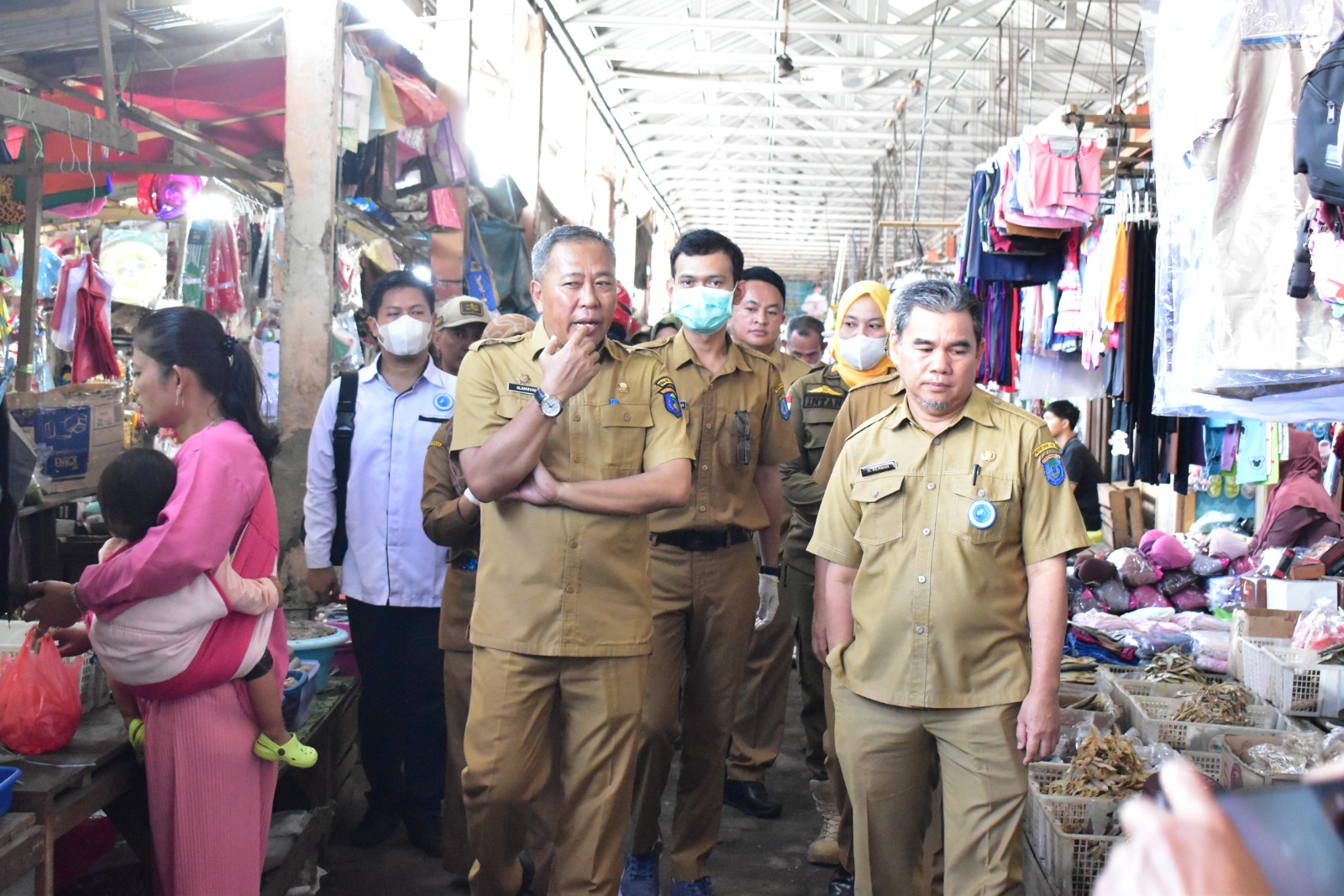 Kliksumatera.com, KAYUAGUNG- Satuan tugas pangan Kabupaten Ogan Komering Ilir yang dipimpin Dinas Perdagangan, Dinas Kesehatan, Dinas Ketahanan Pangan, Sat Pol PP serta aparat kepolisian melakukan pemantauan stok serta keamanan produk pangan yang beredar di Pasar Tradisional di Ogan Komering Ilir.