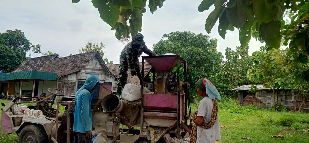 Bojonegoro – Serda Sugianto Anggota Satgas TMMD ke 110 Kodim 0813/Bojonegoro membantu membawakan dan menggilingkan padi Mbah Rumilah warga RT 12, Desa Jatimulyo, Kecamatan Tambakrejo.