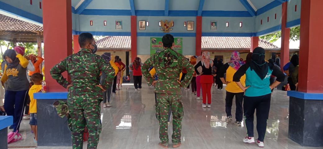 BOJONEGORO – Guna menumbuhkan minat dan semangat berolahraga dikalangan masyarakat, anggota Satgas TMMD 110 Kodim 0813 / Bojonegoro bersama ibu – ibu PKK Desa Jatimulyo melakukan senam Aerobik bersama.