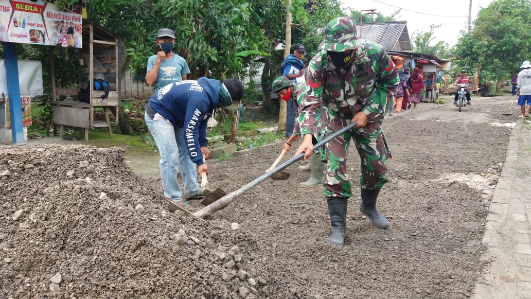 Kegiatan pembangunan fisik diantaranya adalah kegiatan pengaspalan Jalan ini dikerjakan mulai dari pemerataan batu pasir yang dibangun oleh masyarakat dengan didampingi oleh tim teknik Satgas TMMD ke 110.