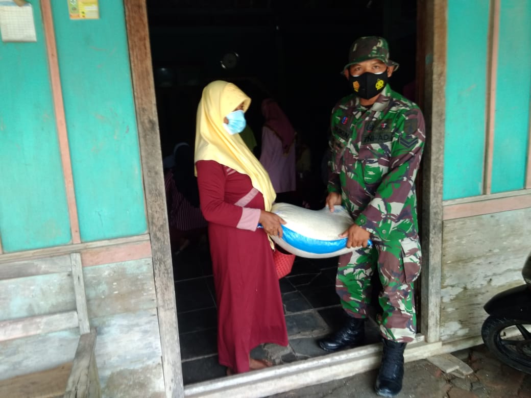 Selain melakukan komoso, anggota TNI ini juga membantu mengeluarkan beras bantuan meringankan pekerjaan.