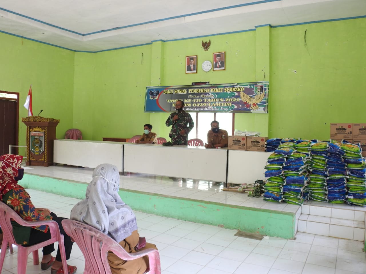 Dalam sambutanya Personil Satgas Sertu Budiono menjelaskan, bahwa kegiatan yang dilaksanakan hari ini merupakan lanjutan rangkaian program non fisik TMMD Ke-110 Kodim 0429/Lamtim berupa bhaksos.
