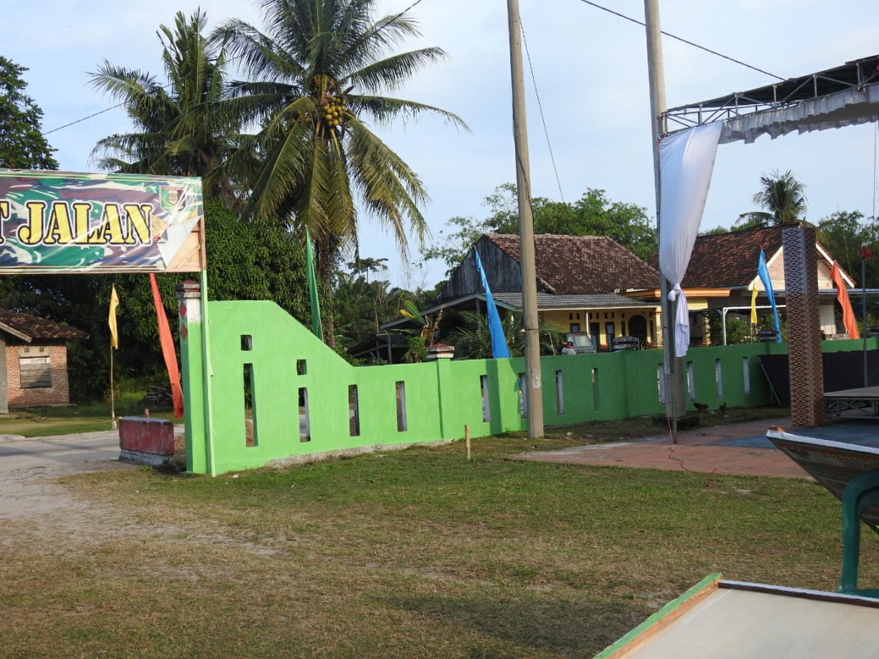 Lampung Timur, Agar terlihat lebih bagus, asri dan menarik pagar balai desa Sukorahayu, Labuhan Maringgai, di cat oleh Anggota Satgas TNI Manunggal Membangun Desa (TMMD) Ke- 110 Kodim 0429/Lamtim.