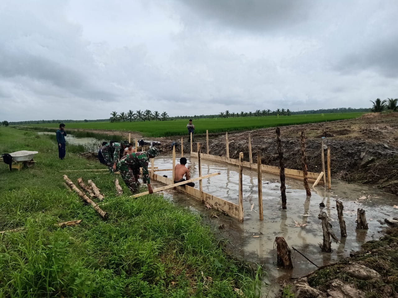 “Tak Hanya pembuatan Badan Jalan, Satgas TMMD 199 Kodim 0401/Muba dalam waktu yang sama melaksanakan kegiatan pembuatan Box Culvert di Desa Tri Mulya Agung, Pembuatan Tembok Penahan di Desa Mandala Jaya, Kec. Lalan serta Membangun jembatan Komposit di Desa Tri Mulya Jaya.