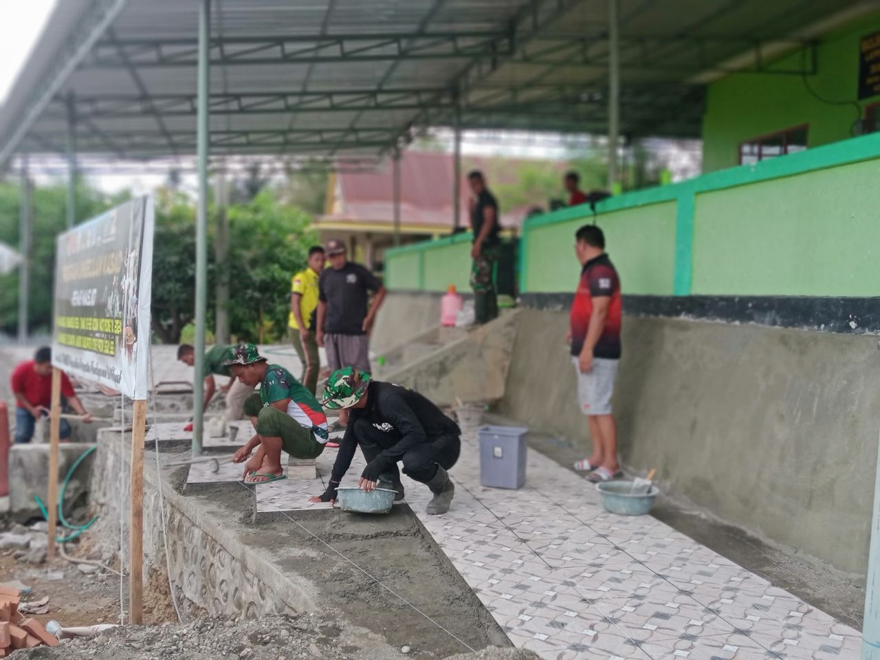 Kehadiran Satgas TMMD 122 ini mempersiapkan material pasir dan semen untuk tahap pengecoran lantai di lanjutkan dengan pemasangan keramik nantinya, bekerja dengan penuh semangat tanpa pamrih untuk jiwa kebersamaan dalam menyelesaikan pengecoran lantai teras masjid.