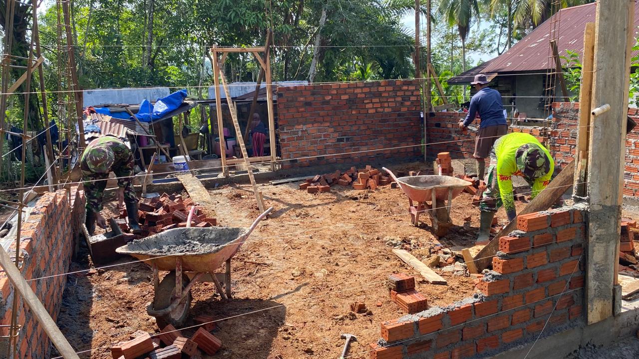 Lettu Inf Agus Haris Selaku Perwira Kordinator (Pakor) Satgas TMMD 122 Kodim0425/Seluma menerangkan, saat ini pada pembangunan rumah layak huni yang berada di Talang Sebaris Dusun 3, masuk tahap pemasangan Kusen Pintu dan dinding bata.