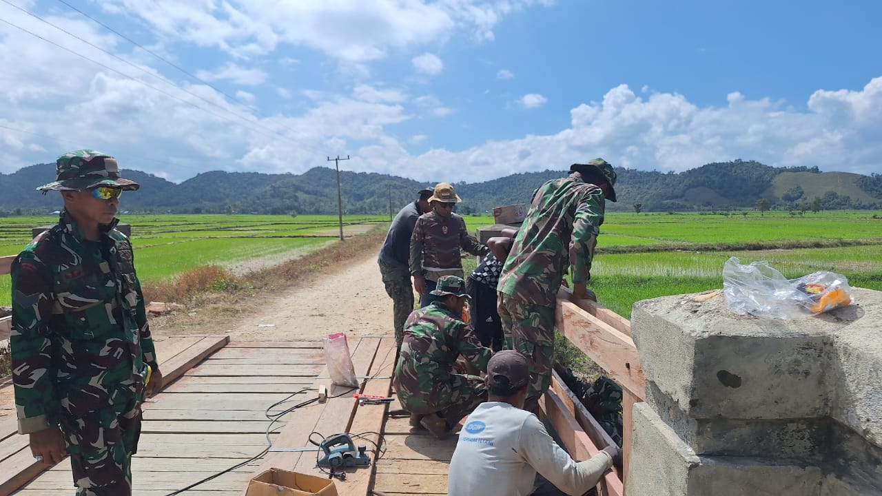 “Jembatan ini merupakan salah satu sasaran fisik dalam program TMMD. Para anggota Satgas TMMD bekerja keras, untuk menyelesaikan pembangunan jembatan ini tepat waktu,” ujar Dan SST Lettu Inf Iswari.