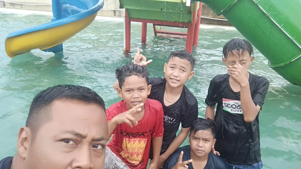 Nampak anak – anak Lorong Jawi dengan anggota Satgas TMMD sangat akrab. Anak – anak kampung jawi terlihat bahagia ketika diajak Danton TMMD Letda Arh Heru berenang di salah satu tempat water boom yang ada di kota Palembang.