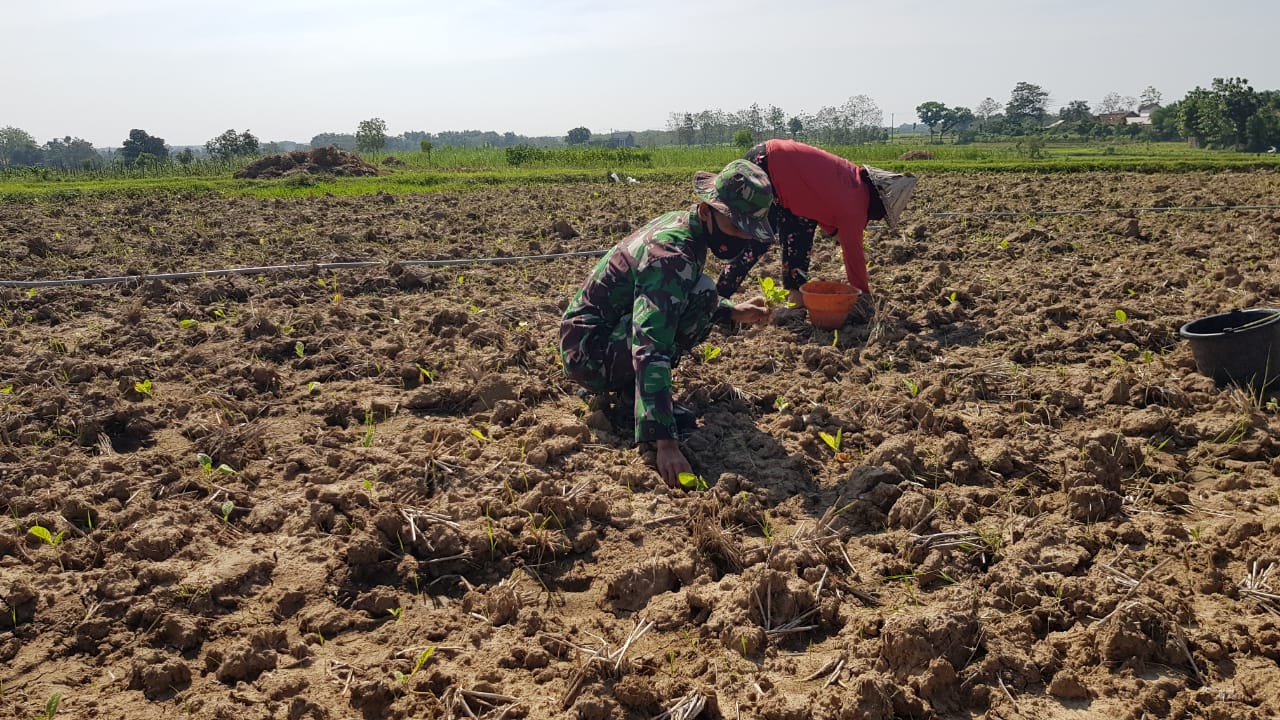Pati – Anggota satgas TMMD reguler ke 111 Kodim Pati selepas bekerja mereka memanfaatkan waktu untuk membantu warga sekitar yang sedang bekerja diladang. Seperti yang dilakukan Serda Supriyadi yang membantu Narti (45) warga Dukuh Kemiri, Desa Tamansari menanam tomat yang sebelumya telah ditanami kacang tanah. Kamis (08/07/2021).