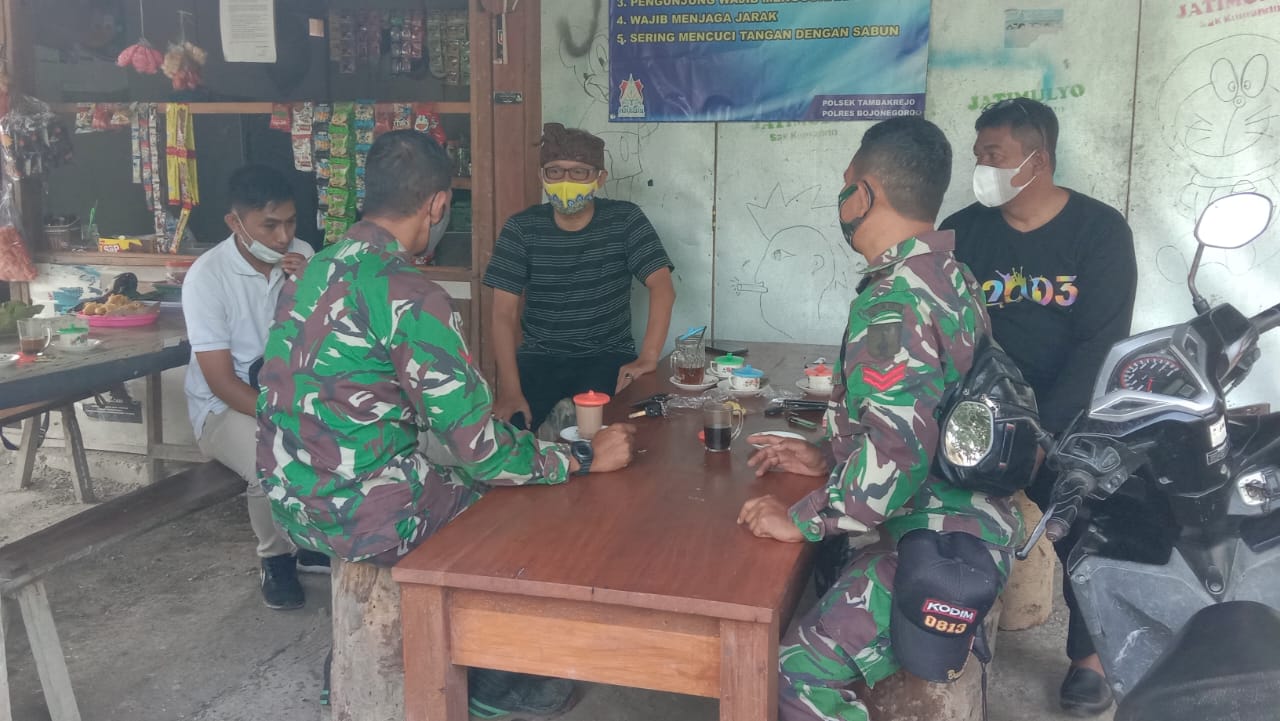 Bojonegoro – Banyak cara dilakukan Anggota Satgas TMMD ke-110 Kodim 0813/Bojonegoro bersama stakeholder serta masyarakat untuk menjaga kedekatan, salah satunya dengan komunikasi sosial (komsos) di warung kopi, Jum’at (19/3/2021).