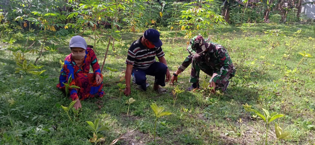 Satgas dan warga yang berada di lokasi sasaran TMMD ke-110 di tahun 2021 itu saling bertukar pengetahuan dalam budidaya tanaman Porang.