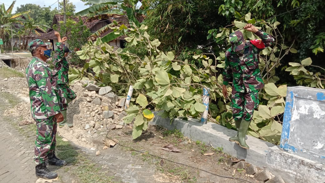 Bojonegoro – Satgas TMMD (TNI Manunggal Membangun Desa) ke-110, harus melakukan penertiban terhadap kabel listrik yang melintas di pinggir jalan dan bergelantungan diatas pohon agar tidak mengganggu adanya exavator atau alat berat yang sedang melakukan pekerjaan untuk normalisasi sungai di desa Ngrancang, Kecamatan Tambakrejo, Bojonegoro,Rabu(17/03/2021).
