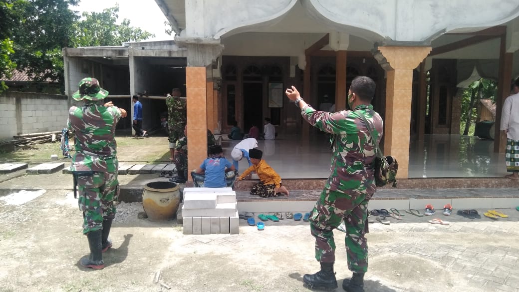 Sekitar pukul 11.50 WIB, bersamaan istirahat siang, nampak Satgas TMMD Kodim 0813/Bojonegoro, menyempatkan diri melaksanakan ibadah shalat dhuhur, Rabu (17/3/2021)
