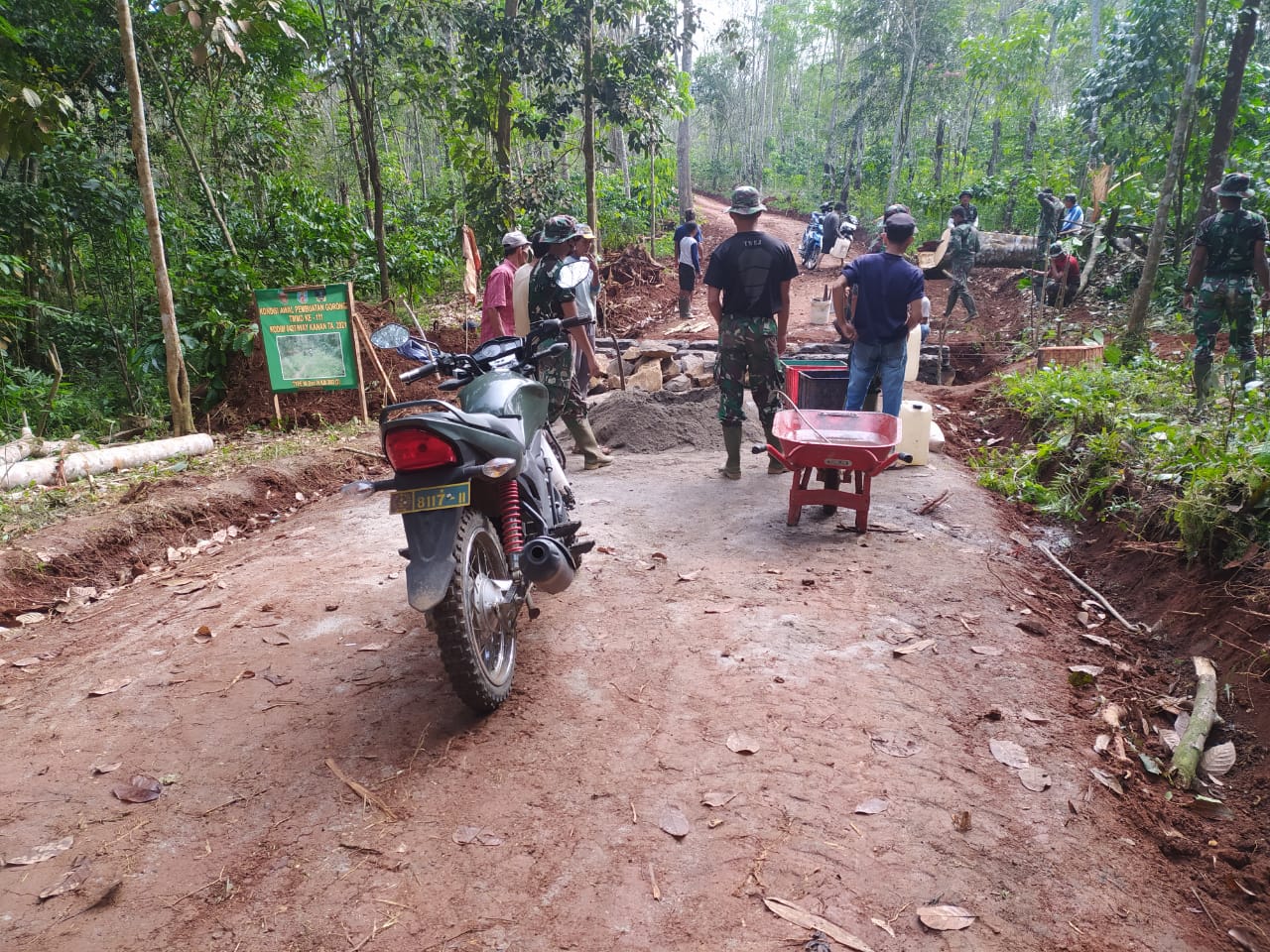 WAY KANAN – Pengerjaan sasaran fisik TMMD Ke-111 Kodim 0427/Way Kanan saat ini diantaranya pengerjaan gorong-gorong Di Dusun IV Km 20/2 Kampung Negeri Batin Kecamatan Umpu Semenguk, Kabupaten Way Kanan. Senin (21/06/21).