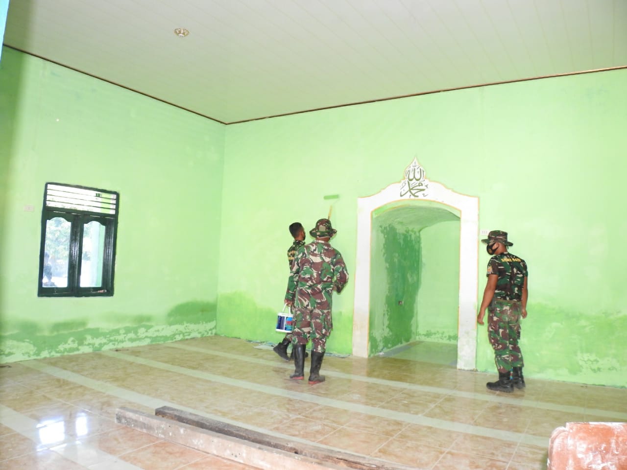 “Finishing yang kami lakukan di Musholla Al-Hijrah antara lain melaksanakan pembersihan sisa-sisa bahan pembangunan dan melaksanakan pengecatan baik di dalam maupun luar Musholla, jika di prosentase saat ini keseluruhan sudah mencapai ±80 %, dan bisa dipastikan dengan waktu yang tersisa akan selesai tepat waktu sebelum TMMD berakhir” pungkas Kapten Inf. Heriadi Gustian.