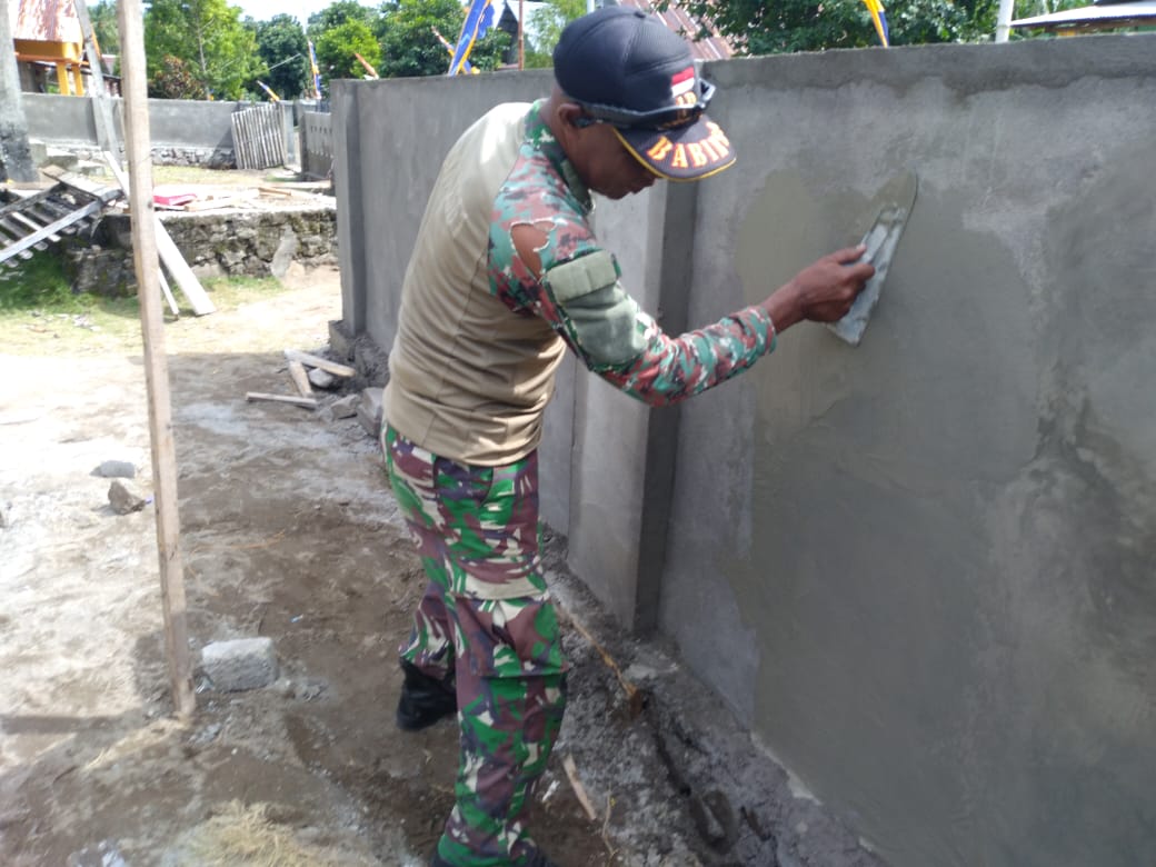TERNATE – Bersama-sama melanjutkan kegiatan Plester masjid Nurul Iman dalam Program TNI Manunggal Membangun Desa (TMMD) ke -111 TA. 2021 Kodim 1501/Ternate, Satgas TMMD dengan warga masyarakat, kegiatan plesteran dinding pagar Masjid Al Falaq bagian fondasi di Kelurahan Figur Kecamatan Pulau Moti, Kota Ternate.