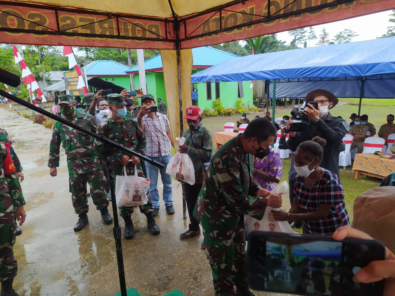 Pembagian sembako gratis yang dilaksanakan oleh Satgas TNI Manunggal Membangun Desa (TMMD) ke-110 bersama dengan anggota Persit Kartika Chandra Kirana Cabang XIII Kodim 1802/Sorong ke sejumlah warga merupakan suatu bentuk kepedulian kepada warga yang di akibatkan oleh penyebaran virus Covid 19 khususnya di Kampung Kamlin.
