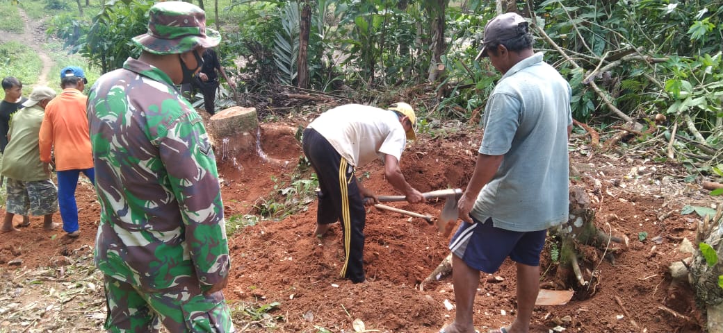 WAY KANAN – Prajurit TNI yang tergabung sebagai Satgas TMMD ke 111 Kodim 0427/Way Kanan bersama masyarakat Kampung Negeri Batin bekerja sama untuk membongkar dan membersikan sisa potongan pohon dan akar kayu disepanjang sasaran pembukaan badan jalan di Dusun VI Sidorejo Kampung Negeri Batin Kecamatan Umpu Semenguk Kabupaten Way Kanan. Senin (21/6/2021).