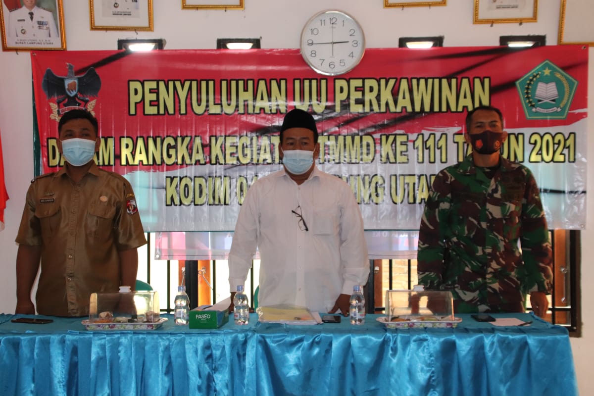 Kegiatan ini, Satgas TMMD melibatkan Kepala Kantor Urusan Agama Kecamatan Abung Selatan, Andi Komarhadi S.ag selaku pembawa materi sosialisasi Undang Undang Pernikahan.