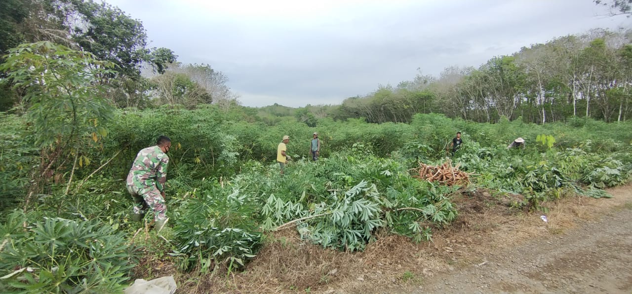 WAY KANAN – Satgas TNI Manunggal Membangun Desa (TMMD) Ke -111 Kodim 0427/Way Kanan tak henti-hentinya selalu mengulurkan tangan membantu warga. Hari ini, anggota Satgas TMMD itu turun langsung membantu memanen buah singkong di kebun milik warga di Kampung Negeri Batin Kecamatan Umpu Semenguk Kabupaten Way Kanan. Sabtu (19/6/2021)