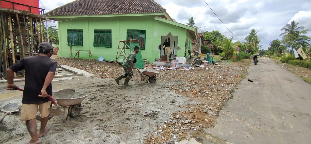 WAY KANAN – Meski hari libur para prajurit TNI yang masuk dalam Satgas TMMD ke -111 Kodim 0427/Way Kanan bersama warga di Kampung Negeri Batin Kecamatan Umpu Semenguk, tetap bekerja seperti biasa, Minggu (11/07/2021)