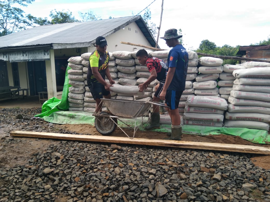BENGKAYANG – Satgas TMMD Kodim 1202/Singkawang gunakan arco untuk mengangkut semen di Desa Sentangau Jaya Jalan Trans Segorong Kecamatan Seluas Kab Bengkayang.