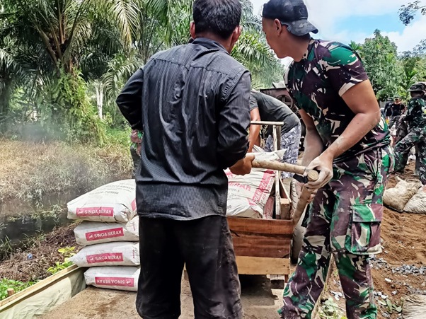 “Hari ini jalan yang sudah kita kerjakan mencapai 200 meter. 2 unit mesin molen kita turunkan di lokasi namun masih terkendala bahan material yang kita dorong masih dilangsir menggunakan sepeda motor dan gerobak karena dibagian ujung jalan hanya selebar 120 cm. Akan tetapi dengan partisipasi masyarakat untuk ikut bergotong royong dan membaur dengan personil satgas TMMD, pekerjaan kita menjadi ringan” ucapnya.
