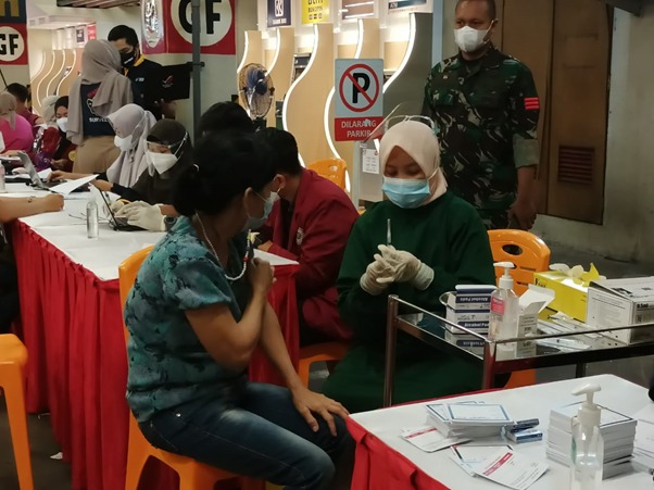 Kubu Raya – TMMD ke-111 Kodim 1207/Pontianak tengah dilaksanakan selama 30 hari di Dusun Maju Jaya, Desa Kuala Mandor B, Kecamatan Kuala Mandor B. Kegiatan yang dilaksanakan adalah pengerjaan fisik rabat beton jalan sepanjang 1100 meter, namun bersamaan dengan kegiatan TMMD, satgas TMMD ke-111 Kodim 1207/Pontianak juga mewadahi kegiatan program vaksinasi nasional yang dilaksanakan di Ayani Mega Mall, Jl. A. Yani, Kelurahan Parit Tokaya, Kecamatan Pontianak Selatan, Selasa (29/06/2021).