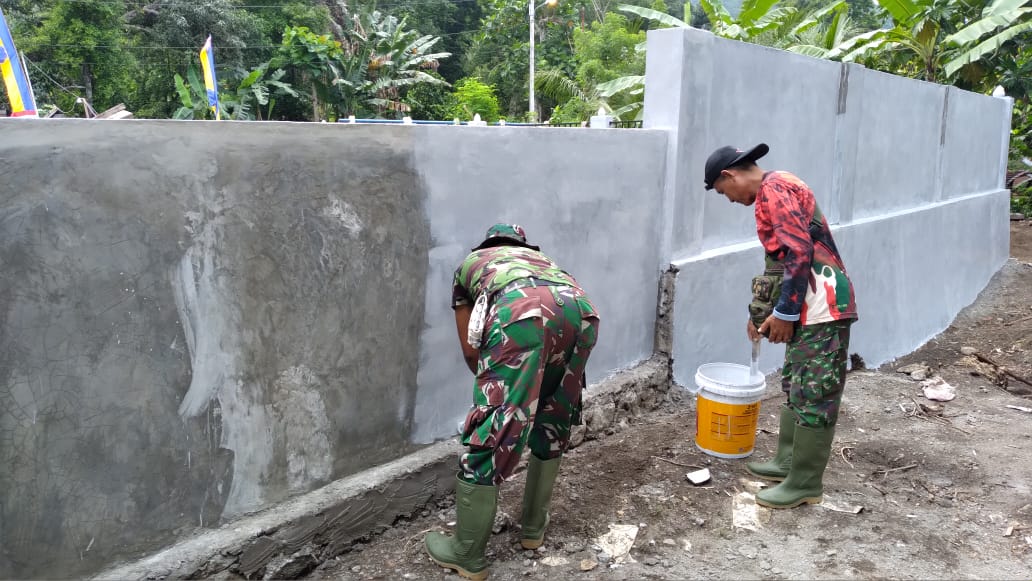 TERNATE – Pekerjaan pagar masjid Nurul Iman yang dikerjakan oleh TNI bersama-sama masyarakat dalam Program TNI Manunggal Membangun Desa (TMMD) ke -111 TA. 2021 Kodim 1501/Ternate, sedang dilakukan pengecekan dasar, Satgas TMMD, pekerjaan sasaran pokok pembangunan pagar masjid saat ini tinggal tahap pengecatan dasar pagar Masjid Nurul Iman di Kelurahan Tafaga Kecamatan Pulau Moti, Kota Ternate.