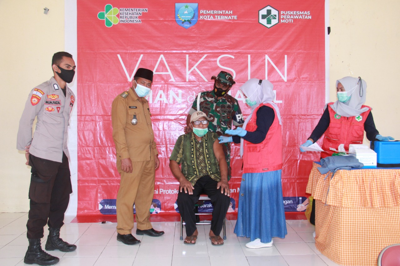 Camat Moti Kota Ternate Jabid Kaidati S. P mengatakan, upaya percepatan vaksinasi agar mencapai herd immunity dilakukan secara holistik dengan menggandeng TNI dan Polri.
