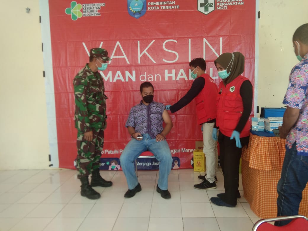 TRRNATE – Pantau Vaksinasi warga masyarakat Kecamatan Pulau Moti.