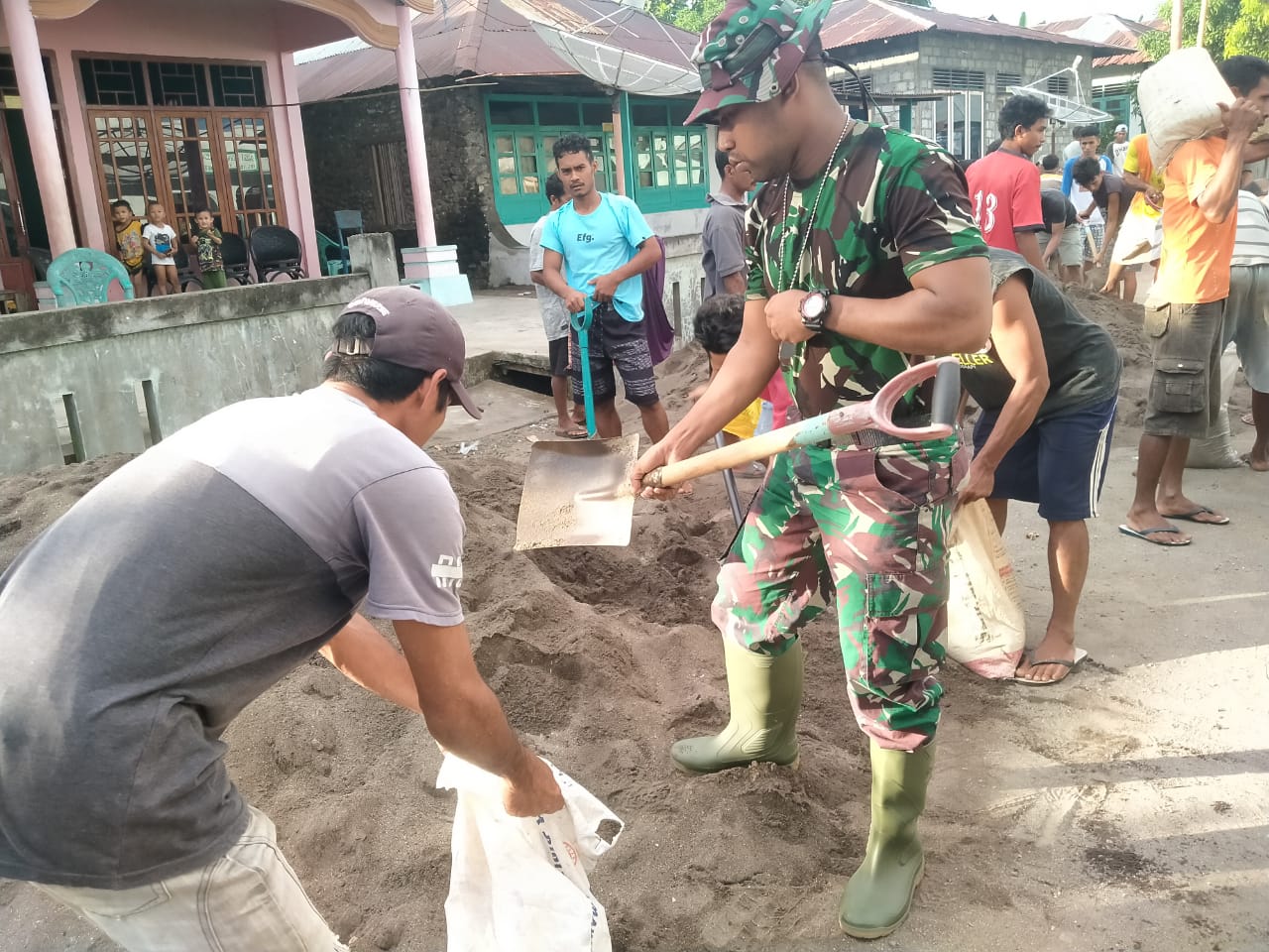 Namun sampai saat ini material batu pasir dan kerikil serta material lainnya sudah siap semuanya, dan saya targetkan pekerjaan ini dengan bergotong royong antara TNI dengan warga masyarakat Kelurahan Tafga akan cepat selesai tidak sampai waktu yang sudah tentukan.