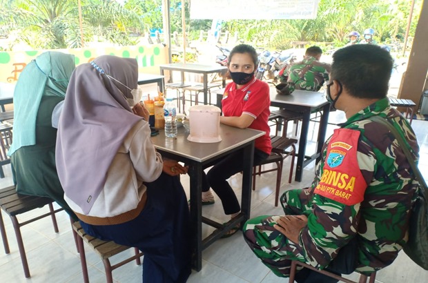 Dalam hal ini, Serda Rahmanta anggota Satgas TMMD Ke-111 TA 2021 Kodim 1207/Pontianak di dusun maju jaya,desa kuala mandor B, kec Kuala mandor B,Kab Kubu raya Berkomunikasi Sosial (Komsos) dengan Perawat yang bertugas di puskesmas desa Kuala mandor B.
