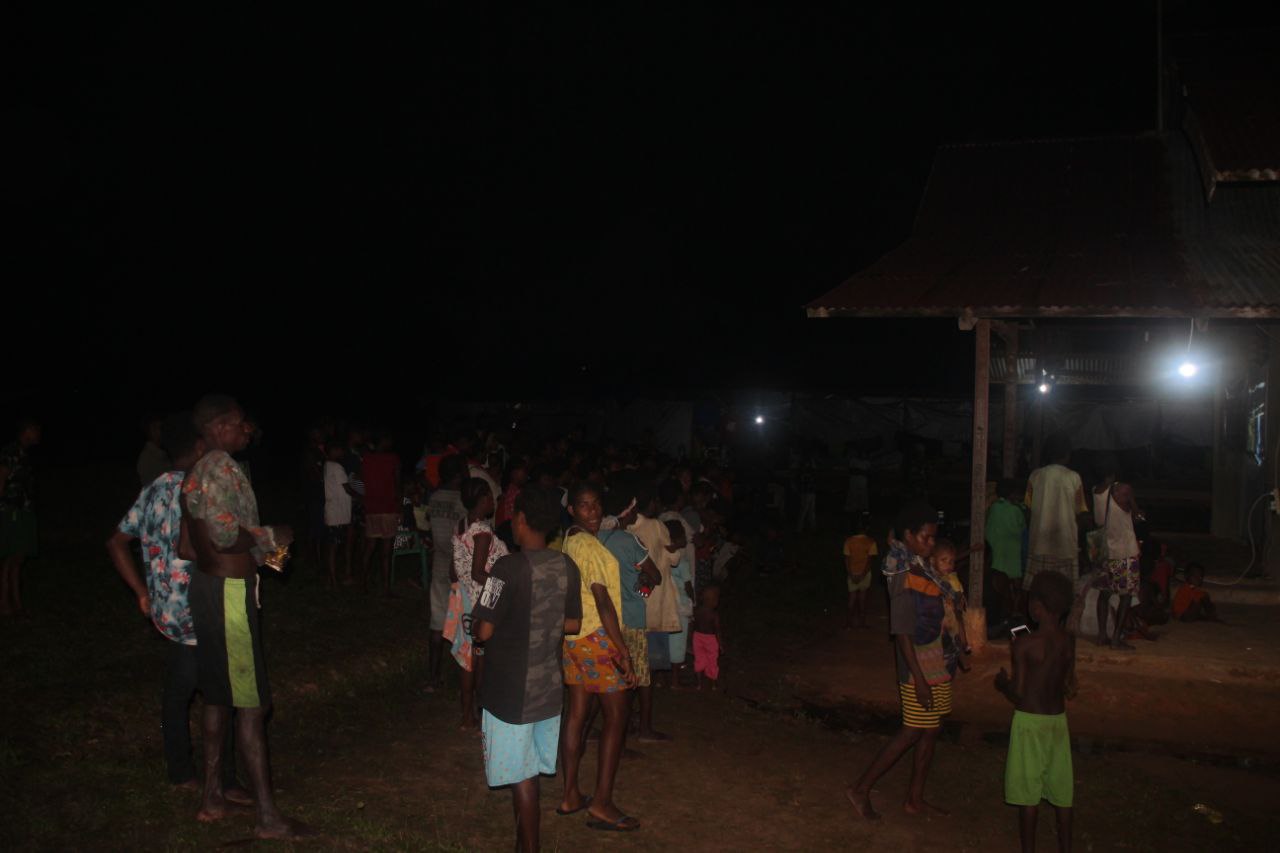 Dalam kegiatan nonton bareng tersebut, tampak terlihat antusias dan kegembiraan masyarakat Kampung Okor, baik anak-anak, remaja hingga orang tua saat menyaksikan film perjuangan yang diputar personel Satgas TMMD ke-112 Kodim 1707/Merauke.