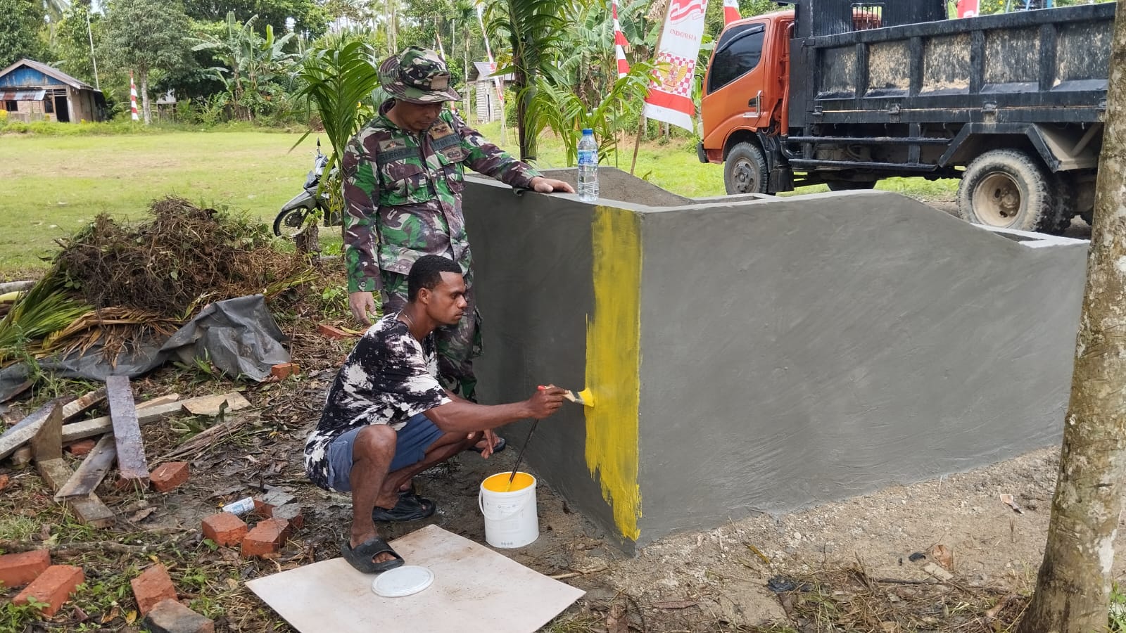 SORONG – Mendukung pola hidup bersih dan sehat Satgas TMMD melaksanakan Sasaran tambahan pembuatan bak sampah di program TMMD KE – 124 Kodim 1802/Sorong. Jumat (16/05/2025).