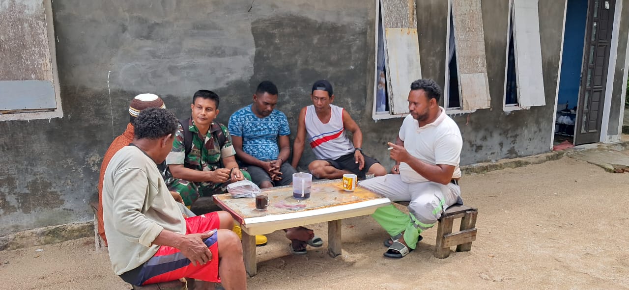 Sorong – Manfaatkan waktu luang Anggota Satgas TMMD Ke – 124 Kodim 1802/Sorong Serka Muhtadi juga selaku Babinsa melaksanakan komunikasi sosial bersama masyarakat kampung yeflio lokasi TMMD, kedekatan antara Satgas dan warga terus terjalin erat. Sosialisasi dan komunikasi ini merupakan salah satu upaya dan langkah yang dilakukan dirinya selaku Babinsa untuk merangkul dan memotivasi masyarakat dalam mensukseskan program TMMD Ke – 124. Jumat (09/05/2025)