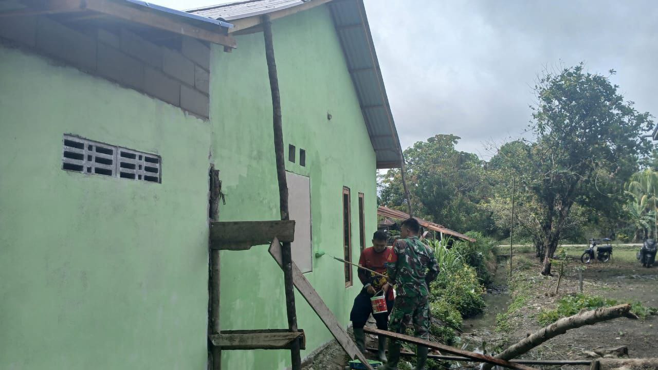 Sambas – Program TNI Manunggal Membangun Desa (TMMD) ke-126 Kodim 1208/Sambas terus menunjukkan hasil nyata di lapangan. Salah satu sasaran fisik yang kini memasuki tahap akhir adalah Rumah Tidak Layak Huni (RTLH) milik Pak Mintoni di Desa Ratu Sepudak, yang telah selesai dicat oleh Satgas TMMD.