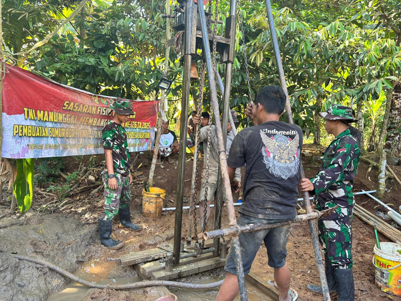 Kegiatan pengeboran sumur ini dilaksanakan oleh anggota Satgas TMMD bersama warga setempat secara gotong royong, dengan semangat kebersamaan dan kepedulian tinggi terhadap kebutuhan dasar masyarakat, khususnya dalam penyediaan air bersih. Titik pengeboran ketiga ini menjadi salah satu bagian penting dari sasaran tambahan TMMD ke-126, yang menitikberatkan pada pemenuhan kebutuhan air bersih untuk menunjang aktivitas masyarakat di fasilitas umum seperti tempat ibadah, sekolah, dan lingkungan sekitar.