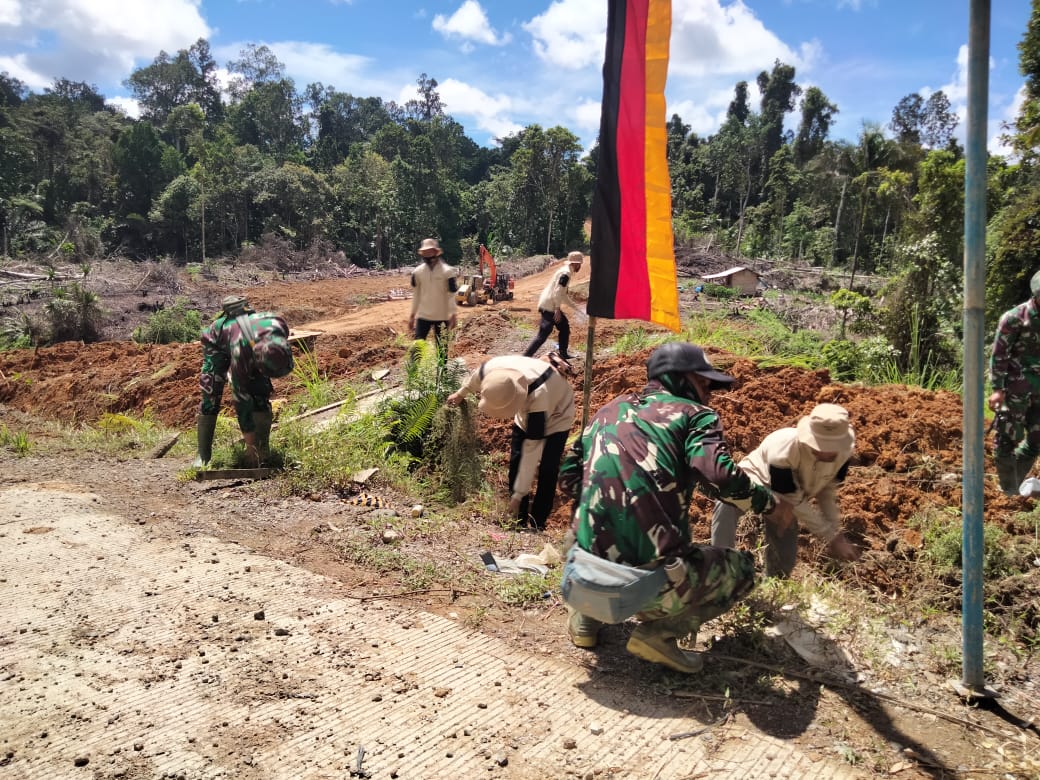 MENTAWAI – Satgas TMMD Kodim 0319 Mentawai lakukan Goro bersama dengan sejumlah Mahasiswa AKN Polinela di lokasi pembangunan Desa Bukit Pamewa Kecamatan Sipora Utara Mentawai, Rabu (17/03/2021)