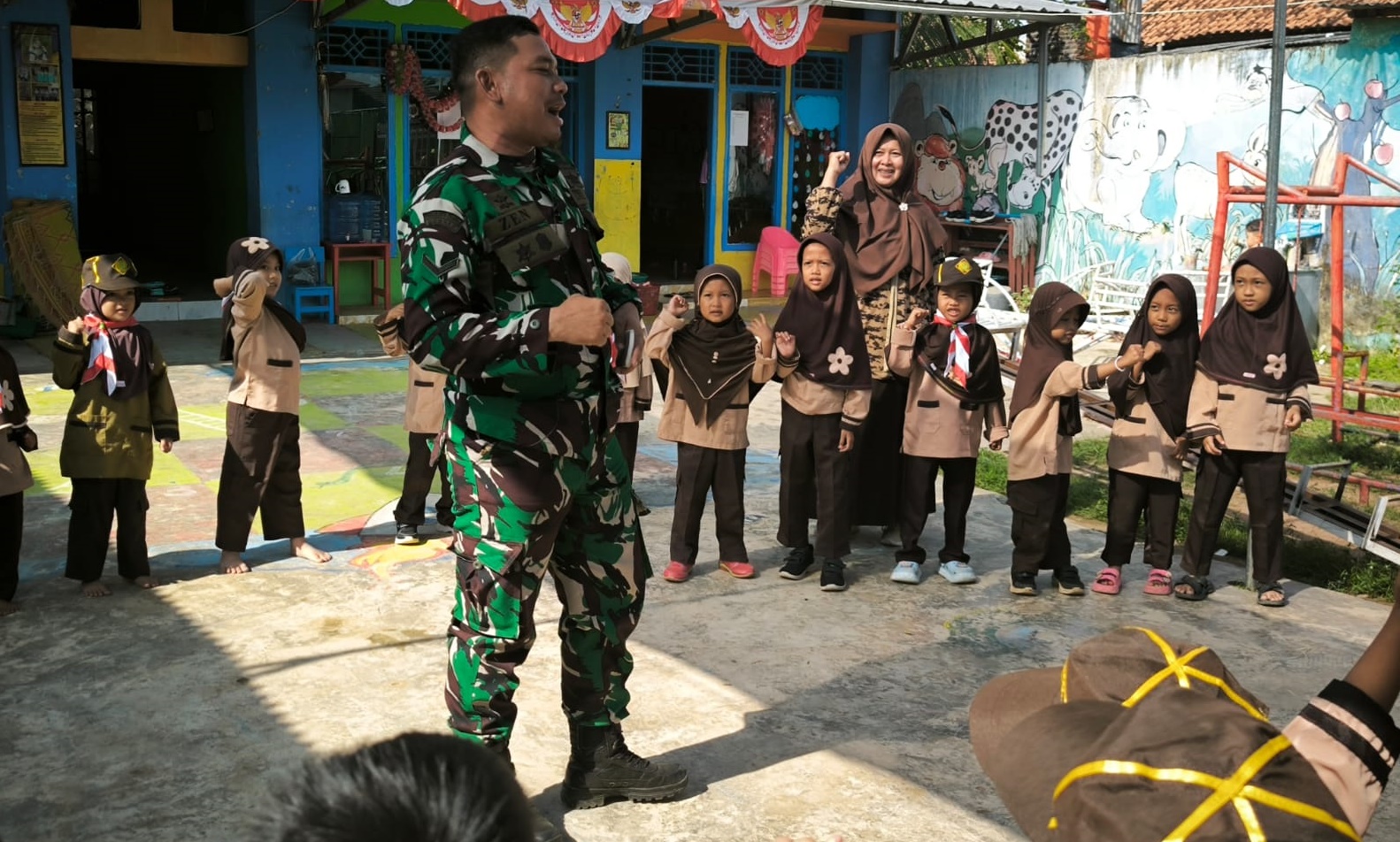KOTAMETRO – Dua personel Satgas TMMD ke-125 Kodim 0411/KM Serda Ahmad Zen (Koramil 411-05/Pgr) dan Serda Gusti (Yon TP 848) memberikan materi GASING kepada siswa PAUD STAR KID di Kampung Sukanegara, Kecamatan Bangunrejo Kabupaten Lampung Tengah. Sabtu (09/08/2025)