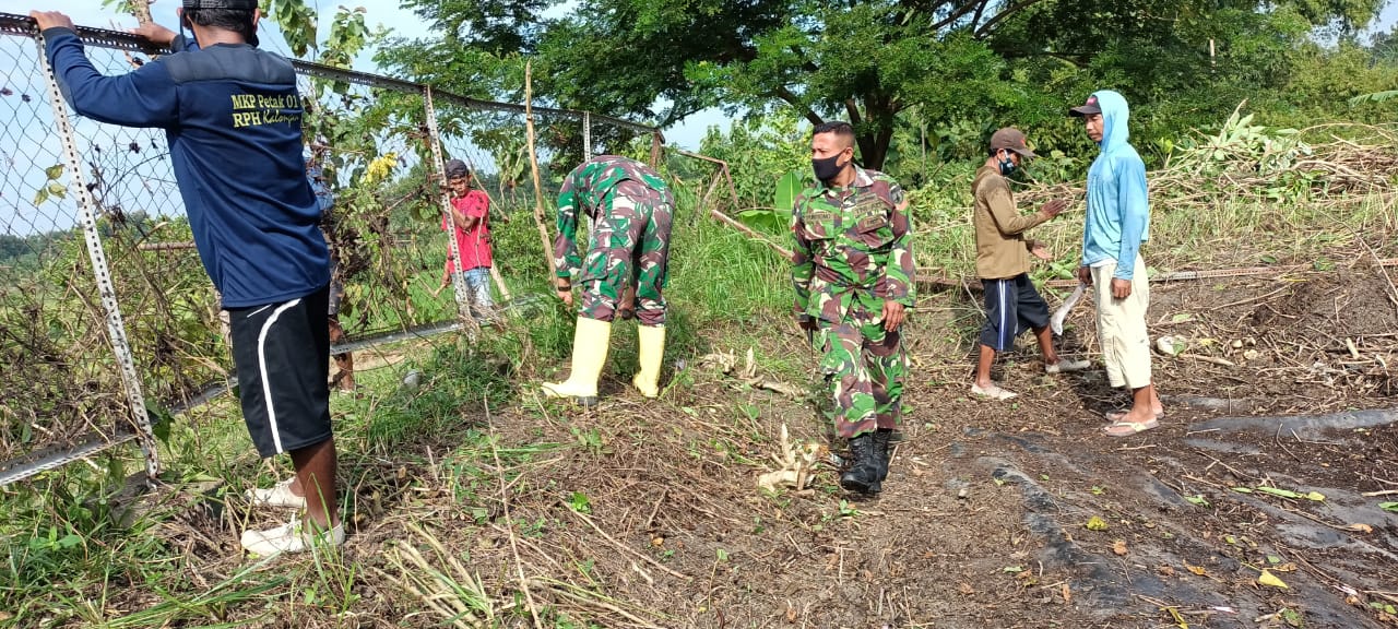 Bojonegoro – Guna mengantisipasi terjadinya banjir, Koptu Kasturi dan Kopda Puntiono selaku anggota Satgas TMMD ke-110 Kodim 0813/Bojonegoro bersama warga bergotong royong memperbaiki saluran air di Dusun Nglambangan, Desa Jatimulyo, Kecamatan Tambakrejo, Kabupaten Bojonegoro.
