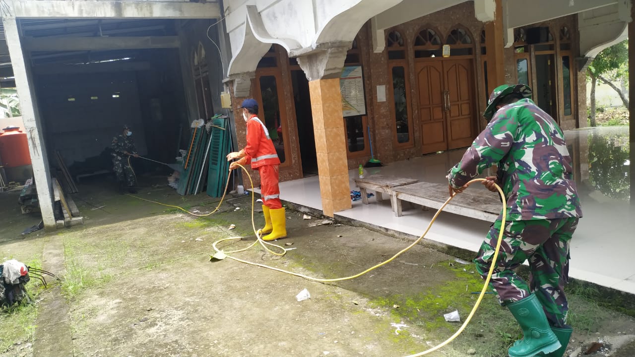 Bojonegoro-Untuk memutus mata rantai penyebaran virus Covid-19, Satgas TMMD rutin melakukan penyemprotan desinfektan dirumah-rumah ibadah.