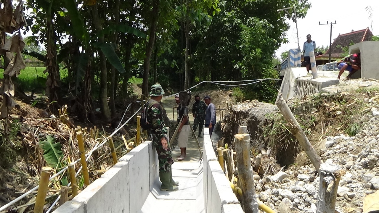 Bojonegoro – Satgas TMMD ke-110 Kodim 0813/Bojonegoro bergotong royong bersama warga memasang U-Dicth dalam pembuatan gorong-gorong di Dusun Nglambangan, Desa Jatimulyo, Kecamatan Tambakrejo, Kabupaten Bojonegoro.