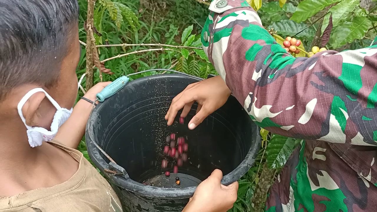 Prada Sultoni HSB, Senin (12/7/2021), disela memetik kopi ia memberikan motivasi kepada Adinda Rian untuk terus belajar dengan rajin agar nantinya bisa menjadi orang yang sukses baik jadi tentara seperti dirinya, jadi pekebun, jadi pejabat ataupun jadi profesi yang lainnya. (*)