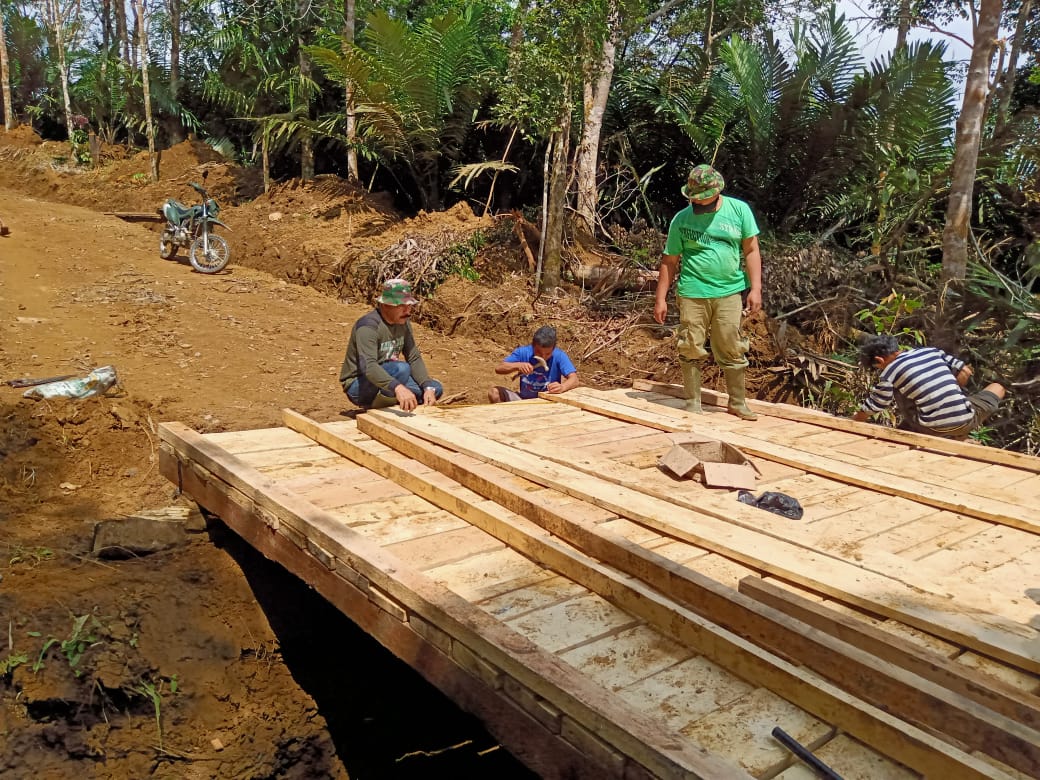 Satgas TMMD Kodim 0212/TS melaksanakan pembuatan jembatan 5 dari 9 jembatan yang akan dibangun di Desa Siuhom, Kec. Angkola Barat, Kab. Tapsel, Serka T. Pangaben, Minggu (4/7/2021), mengatakan giat pembangunan jembatan kelima jalan baru 6,4 km.